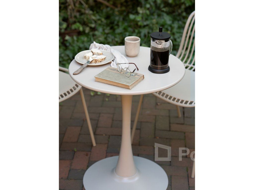 Hledáte stolek, který je elegantní, odolný a nezabere mnoho místa? Meira s průměrem 60 cm je ideálním společníkem do menších prostor. Jeho celokovová konstrukce v jemném šedohnědém odstínu působí velmi moderně a vzdušně, díky čemuž se hodí na balkon, malou terasu nebo do stylové domácí kavárny.