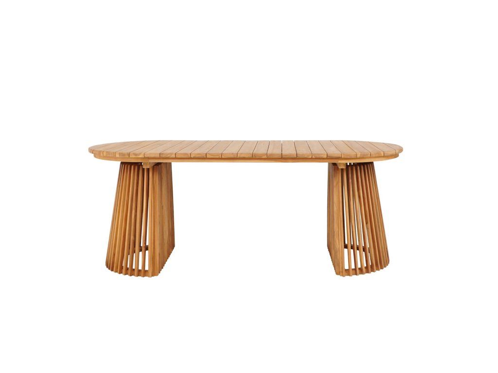 Teakové dřevo je unikátní svým vysokým obsahem přirozených olejů, které ho chrání před vlhkostí, hmyzem a hnilobou. Stůl Berja díky tomu nepotřebuje žádné složité povrchové úpravy, aby vydržel desetiletí. Jeho povrch je příjemný na dotek a každým rokem získává na osobitém charakteru.