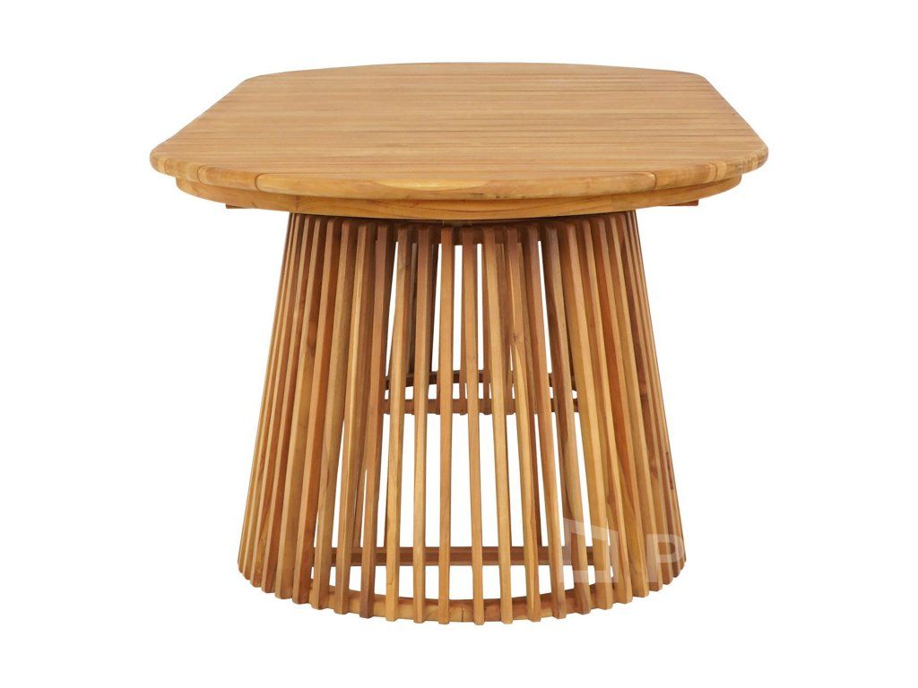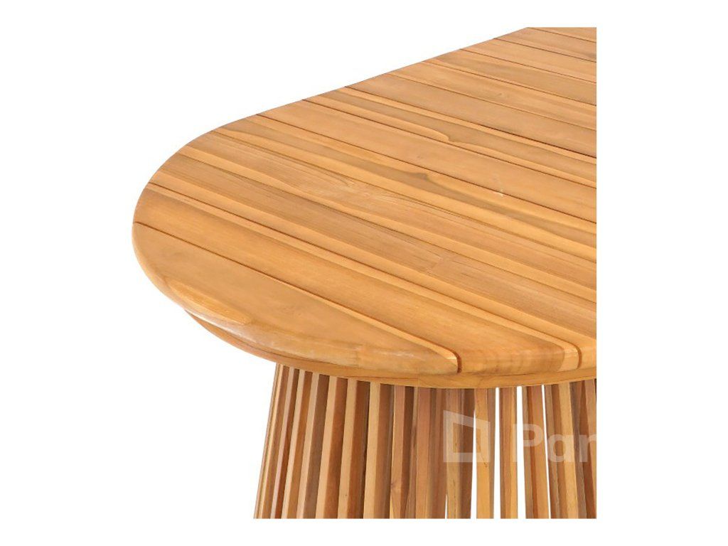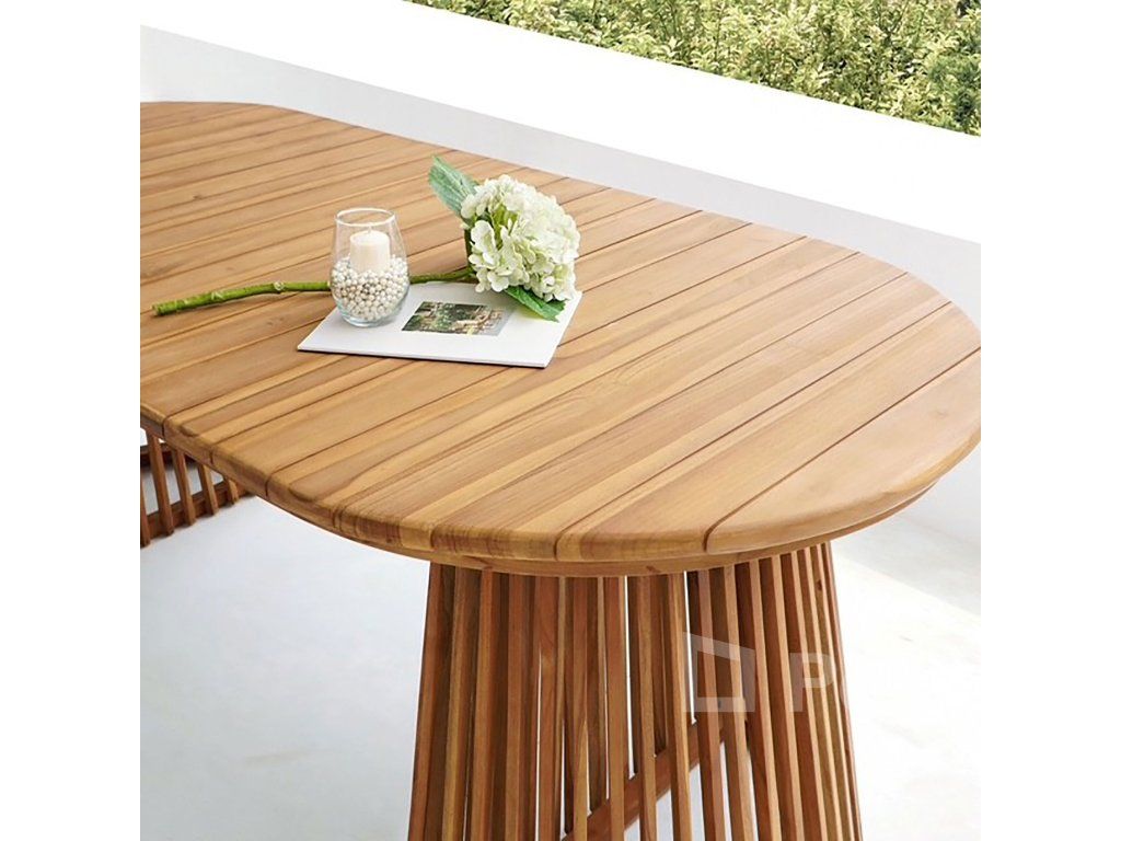 100% masivní teak: Žádné dýhy ani náhražky. Celý stůl je postaven z masivních kusů teaku, což mu dodává autentický a luxusní vzhled.