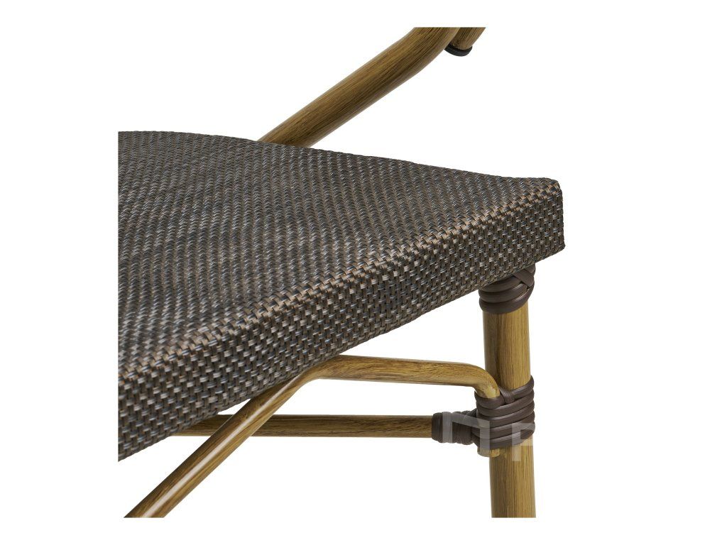 Rám s bambusovým vzhledem: Detailní povrchová úprava hliníku věrně imituje strukturu a barvu bambusu, což dodává židli exotický a naturální šmrnc.