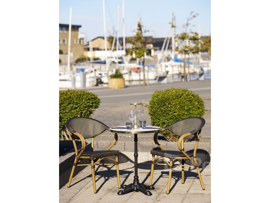 Přeneste atmosféru útulných pařížských kaváren přímo k sobě domů nebo na terasu. Calda je židle, která na první pohled klame tělem – její rám vypadá jako přírodní bambus, ale ve skutečnosti jde o vysoce kvalitní hliník. V kombinaci s tmavě hnědým výpletem Textilene vytváří elegantní a mimořádně odolný kus nábytku, který přežije sezóny bez známek opotřebení.