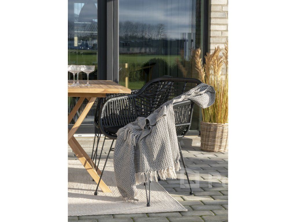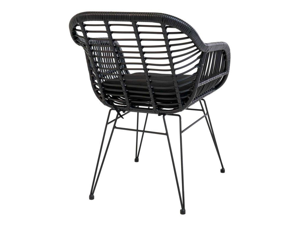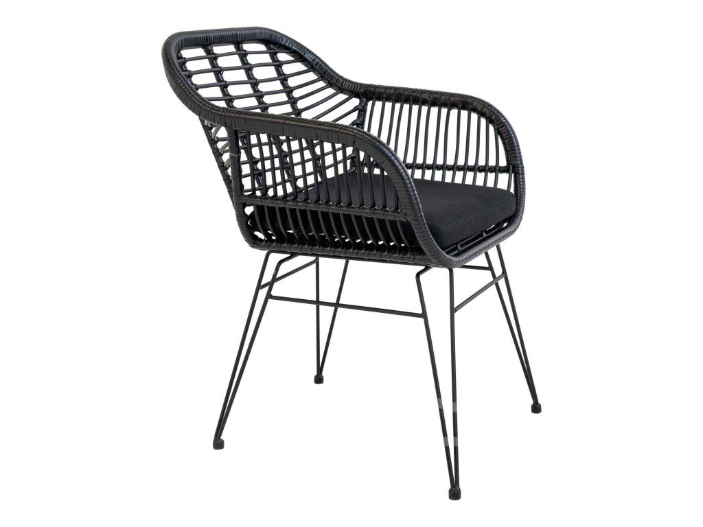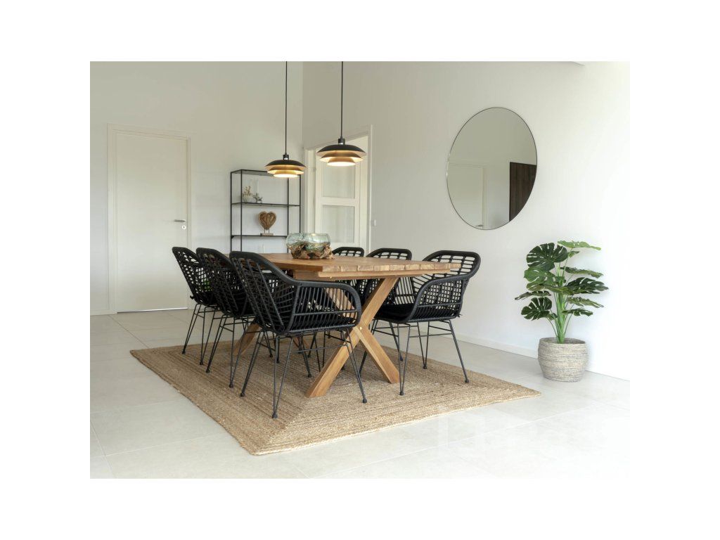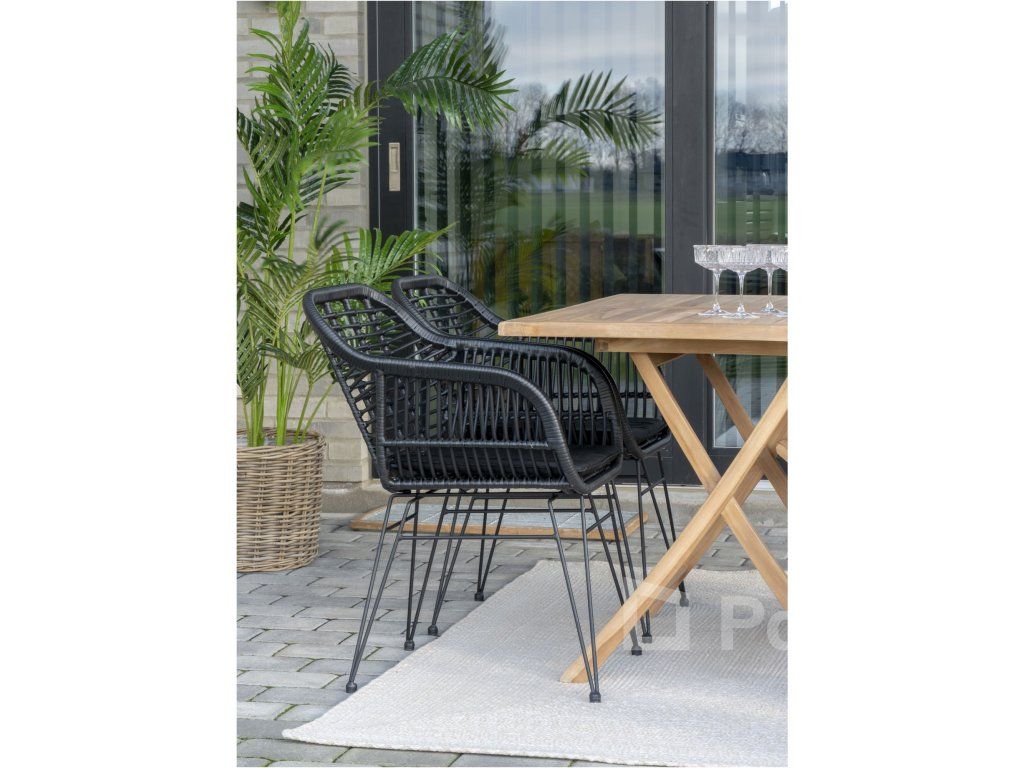 Dodejte svému stolování hloubku a texturu s křeslem Trieste. Toto křeslo mistrovsky kombinuje organický vzhled polyratanu s přísnými liniemi černé kovové podnože. Výsledkem je nadčasový kousek, který nabízí komfort křesla a praktičnost jídelní židle, ideální pro moderní interiéry i kryté exteriéry.