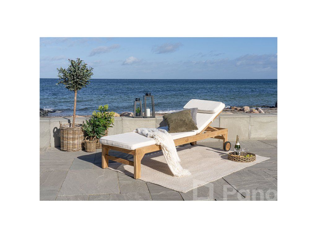 100% masivní teak: Pod polstrem se skrývá poctivé teakové dřevo s vysokým obsahem olejů, které zajišťuje, že lehátko zůstane krásné po celá desetiletí.