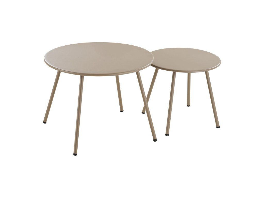 Dva stolky v balení: Větší stolek (ø 60 cm) a menší stolek (ø 43,5 cm) nabízejí flexibilitu při odkládání drinků či dekorací.