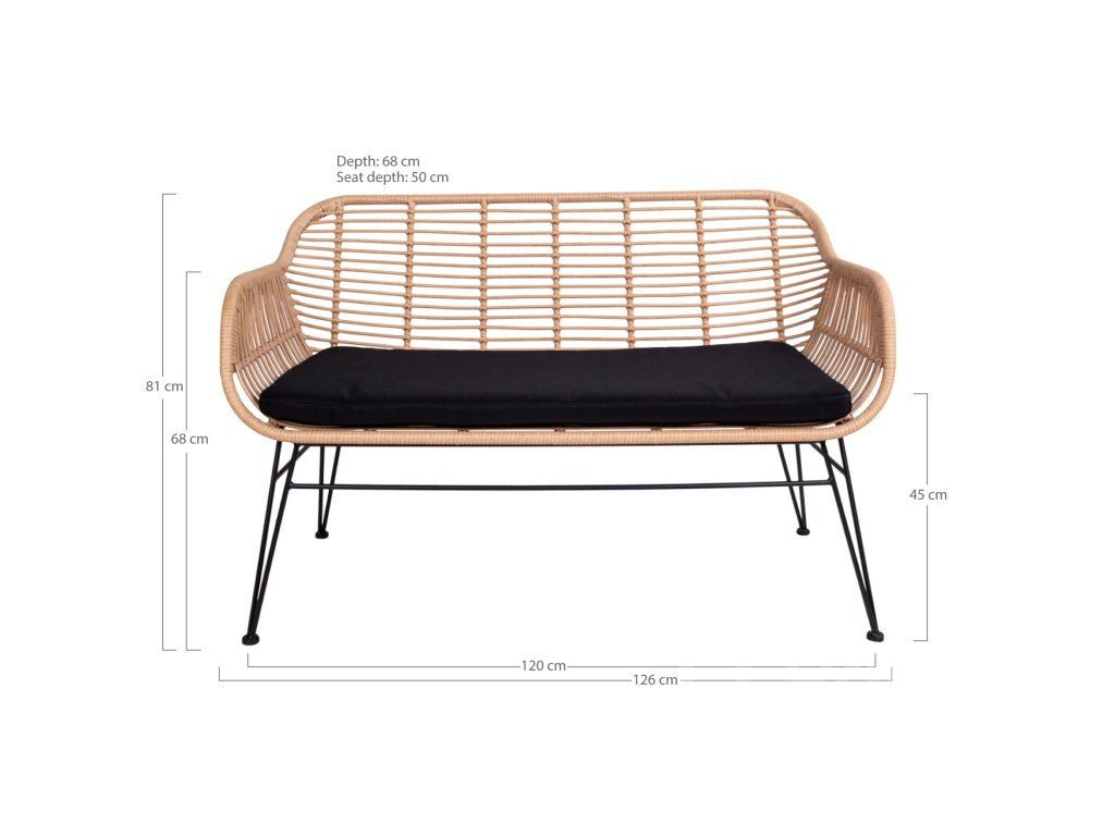 Pohovka Trieste je navržena pro milovníky čistých linií a skandinávského minimalismu. Kombinuje přírodní vzhled PE ratanu s industriálním charakterem černých kovových nohou. Díky své mimořádně nízké hmotnosti (pouhých 11,2 kg) a kompaktní šířce je tento kousek ideální pro městské balkony, verandy nebo stylové domácí kavárny.