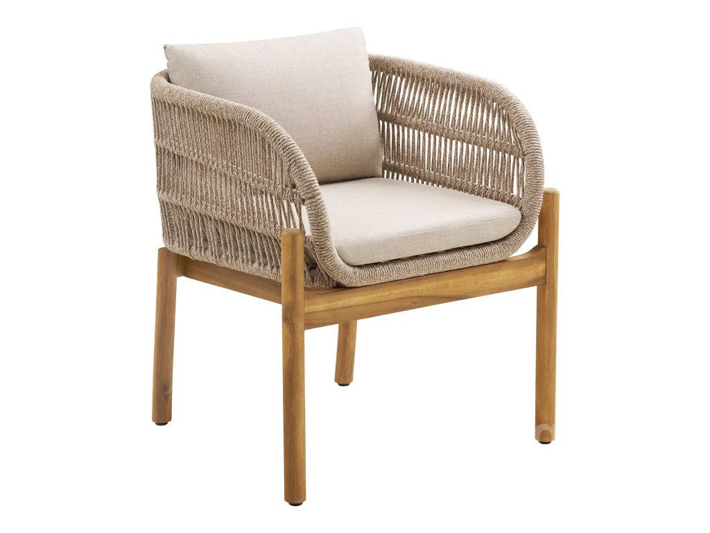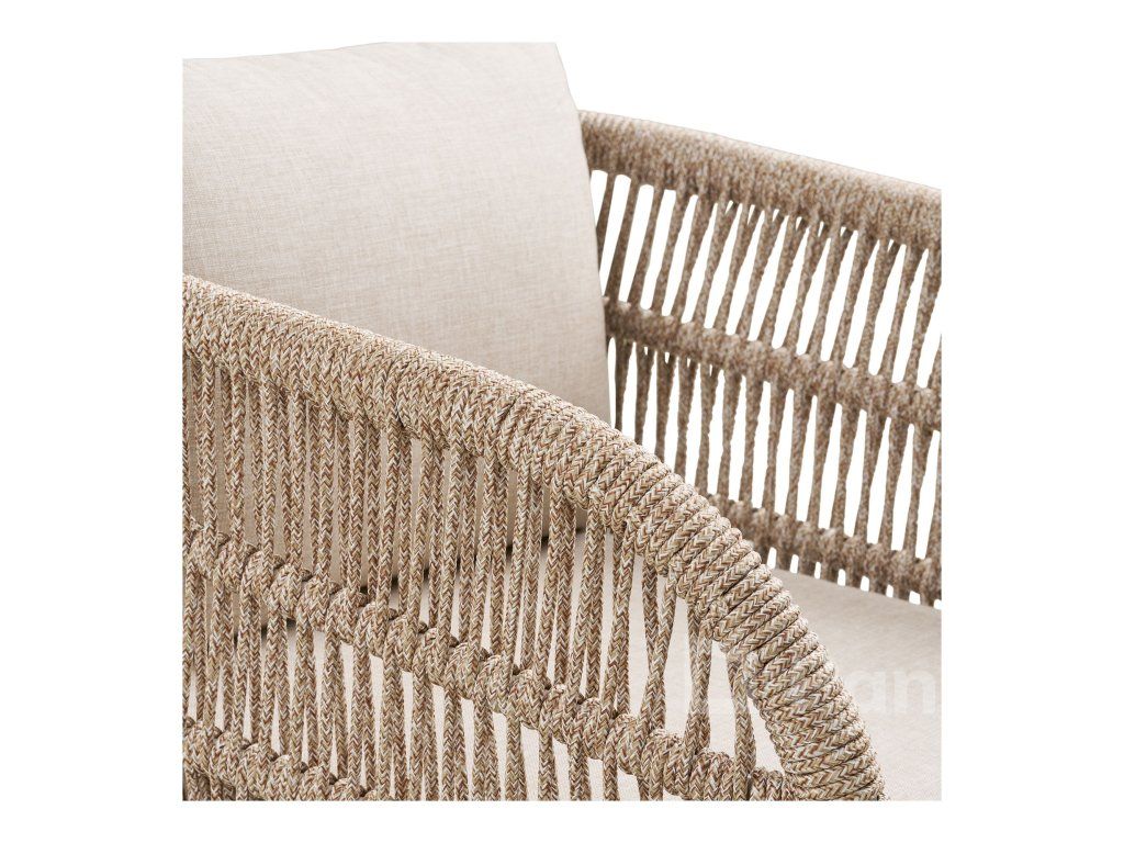 Umělecký výplet: Opěradla židlí jsou vyplétána speciálním polyesterovým lanem, které je nejen vizuálně atraktivní, ale také vysoce odolné vůči povětrnostním vlivům a UV záření.